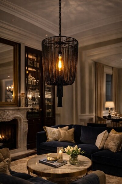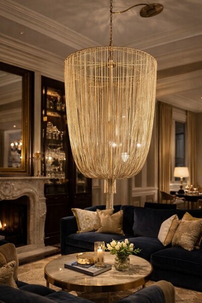 Deze stijlvolle lamp zorgt voor een luxe uitstraling in een grote ruimte. Verkrijgbaar in verschillende maten (zie foto's) en in de kleur: Zwart en Goud
